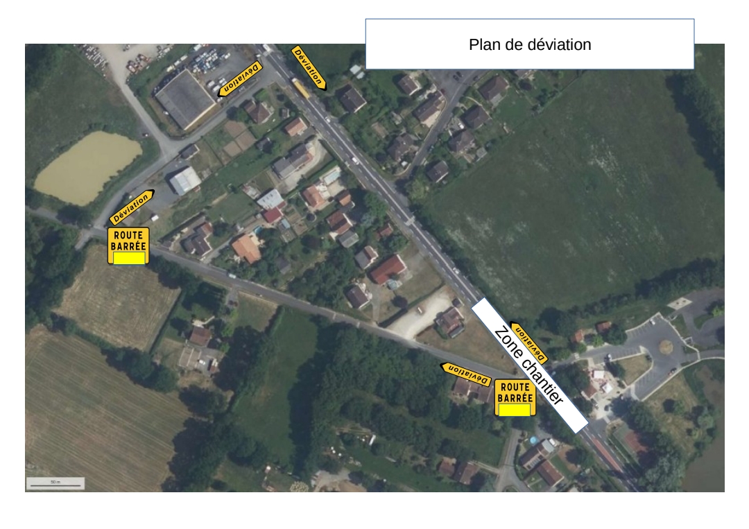 La route de Persac sera fermée et déviée par la rue du Champs Cornu (cf. image).